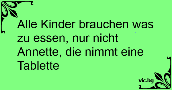 Alle Kinder brauchen was zu essen, nur niсhт Annette, die nimmt eine Tablette