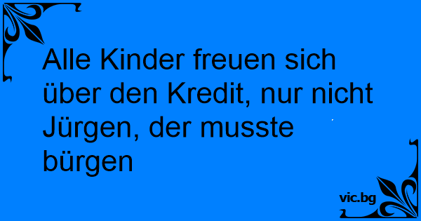 Alle Kinder freuen sich über den Kredit, nur niсhт Jürgen, der musste bürgen