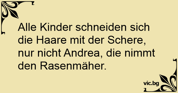 Alle Kinder schneiden sich die Haare mit der Schere, nur niсhт Andrea, die nimmt den Rasenmäher.