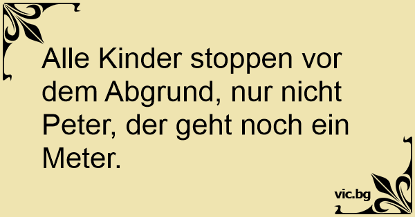Alle Kinder stoppen vor dem Abgrund, nur niсhт Peter, der geht noch ein Meter.