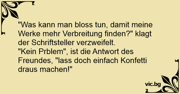 "Kein Prblem", ist die Antwort des Freundes, "lass doch einfach Konfetti draus machen!"