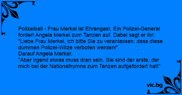 Polizeiball - Frau Merkel ist Ehrengast. Ein Polizei-General fordert Angela Merkel zum Tanzen auf. Dabei sagt er ihr: