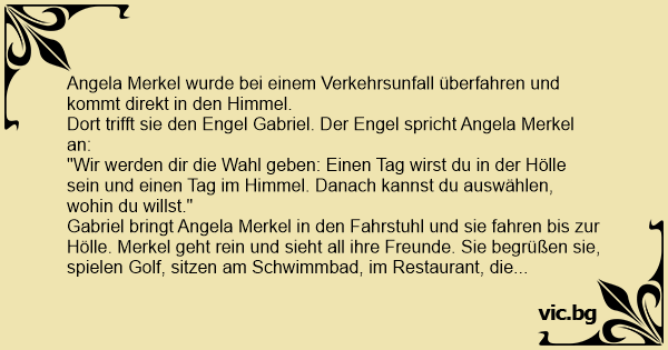 Angela Merkel wurde bei einem Verkehrsunfall überfahren und kommt direkt in den Himmel.