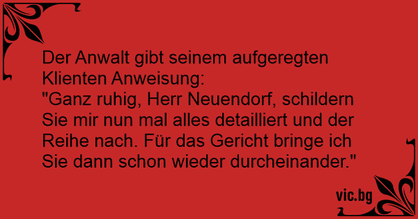 "Ganz ruhig, Herr Neuendorf, schildern Sie mir nun mal alles detailliert und der Reihe nach. Für das Gericht bringe ich Sie dann schon wieder durcheinander."