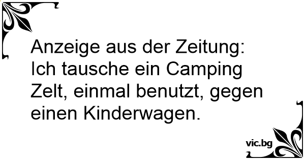 Inserat in einer Zeitung: Tausche Zelt für zwei Personen - einmal benutzt - gegen Kinderwagen. Eilt!
