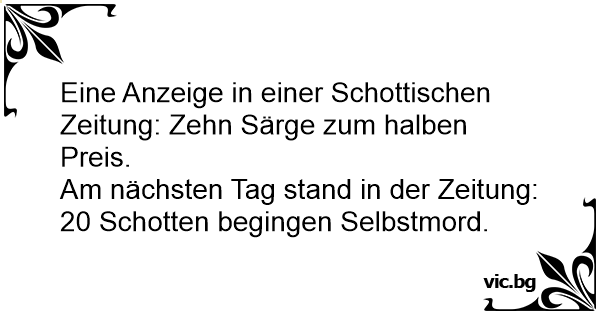 Am nächsten Tag stand in der Zeitung: 20 Schotten begingen Selbstmord.
