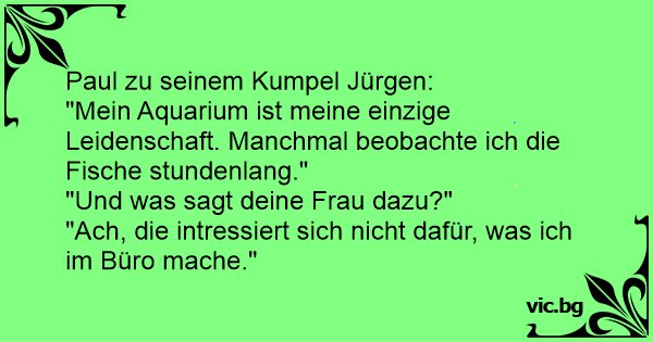 "Mein Aquarium ist meine einzige Leidenschaft. Manchmal beobachte ich die Fische stundenlang."