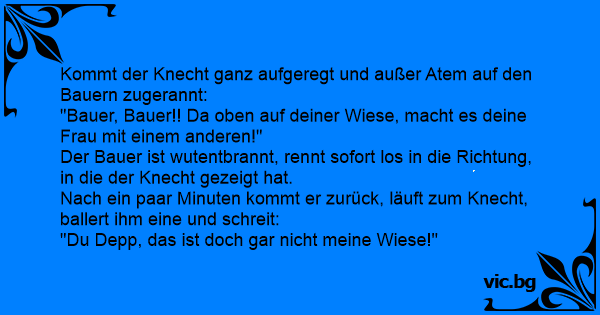"Bauer, Bauer!! Da oben auf deiner Wiese, macht es deine Frau mit einem anderen!"