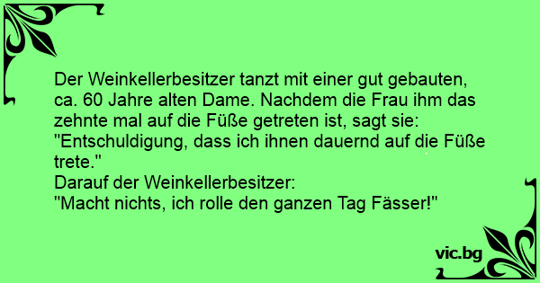 Der Weinkellerbesitzer tanzt mit einer gut gebauten, ca. 60 Jahre alten Dame. Nachdem die Frau ihm das zehnte mal auf die Füße getreten ist, sagt sie: