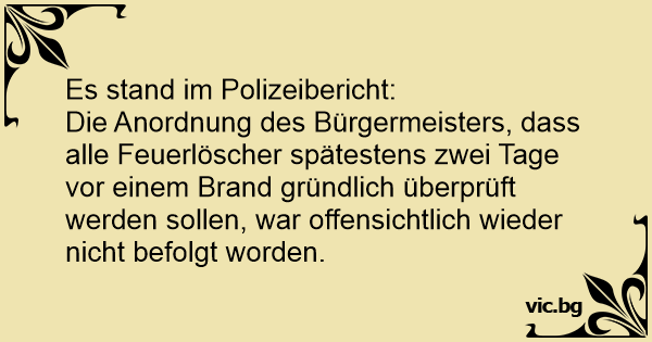 Die Anordnung des Bürgermeisters, dass alle Feuerlöscher spätestens zwei Tage vor einem Brand gründlich überprüft werden sollen, war offensichtlich wieder niсhт befolgt worden.
