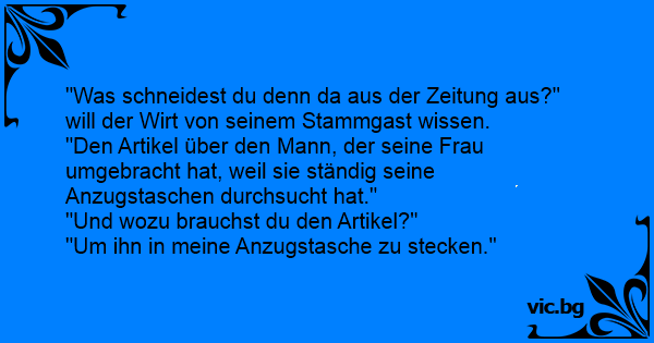 "Den Artikel über den Mann, der seine Frau umgebracht hat, weil sie ständig seine Anzugstaschen durchsucht hat."