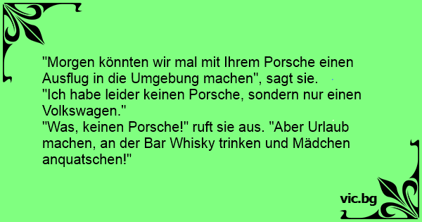 "Ich habe leider keinen Porsche, sondern nur einen Volkswagen."