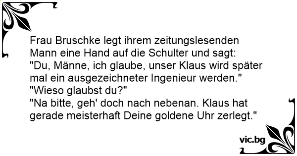 "Du, Männe, ich glaube, unser Klaus wird später mal ein ausgezeichneter Ingenieur werden."