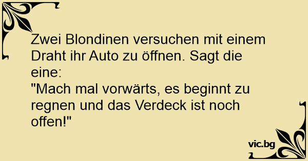 Zwei Blondinen versuchen mit einem Draht ihr Auto zu öffnen. Sagt die eine: