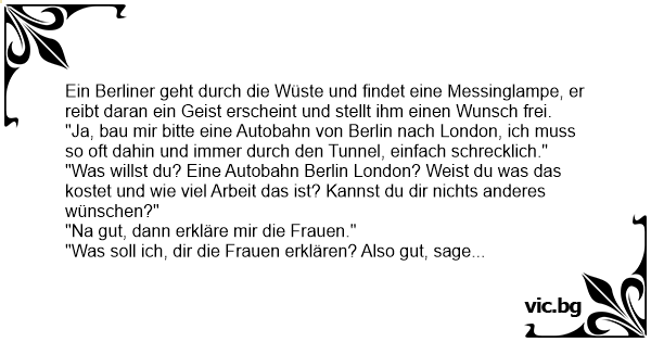 Ein Berliner geht durch die Wüste und findet eine Messinglampe, er reibt daran ein Geist erscheint und stellt ihm einen Wunsch frei.