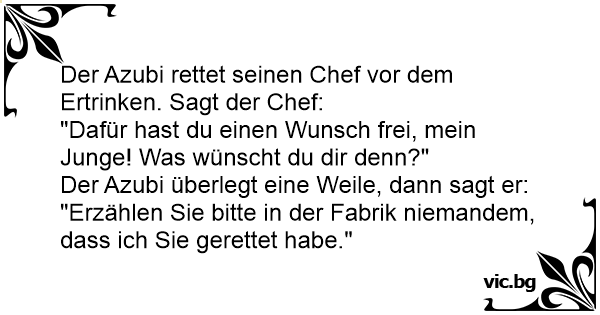 Der Azubi rettet seinen Chef vor dem Ertrinken. Sagt der Chef: