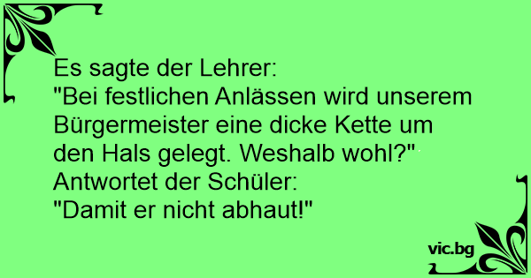 "Bei festlichen Anlässen wird unserem Bürgermeister eine dicke Kette um den Hals gelegt. Weshalb wohl?"