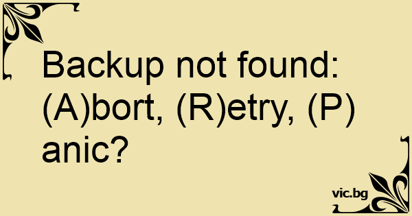 Backup not found: (A)bort, (R)etry, (P)anic?