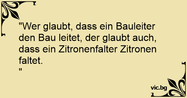 "Wer glaubt, dass ein Bauleiter den Bau leitet, der glaubt auch, dass ein Zitronenfalter Zitronen faltet.