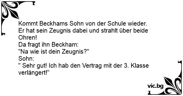 - Nå hvordan gik det til eksamen? spurgte fodboldspilleren sin søn. - Fint! Min kontrakt med 9. klasse er forlænget med et år.