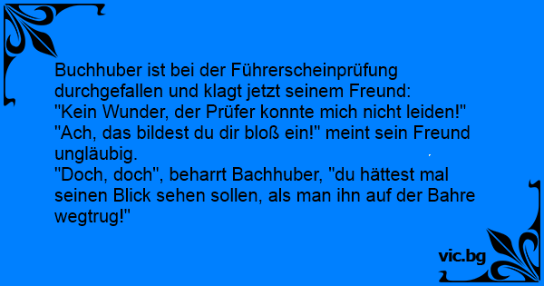Buchhuber ist bei der Führerscheinprüfung durchgefallen und klagt jetzt seinem Freund: