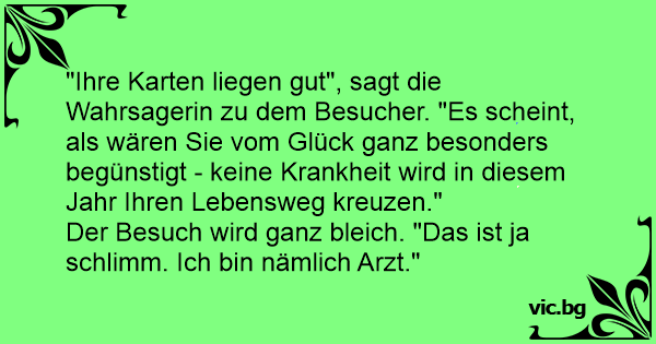 "Ihre Karten liegen gut", sagt die Wahrsagerin zu dem Besucher. "Es scheint, als wären Sie vom Glück ganz besonders begünstigt - keine Krankheit wird in diesem Jahr Ihren Lebensweg kreuzen."