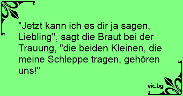 "Jetzt kann ich es dir ja sagen, Liebling", sagt die Braut bei der Trauung, "die beiden Kleinen, die meine Schleppe tragen, gehören uns!"
