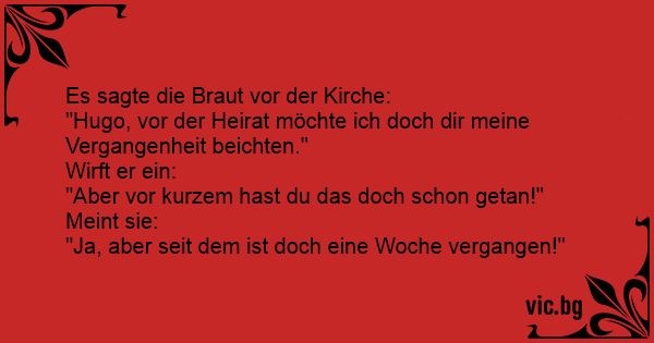 "Hugo, vor der Heirat möchte ich doch dir meine Vergangenheit beichten."