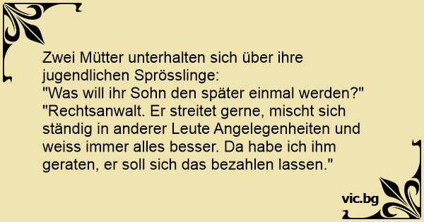 "Rechtsanwalt. Er streitet gerne, mischt sich ständig in anderer Leute Angelegenheiten und weiss immer alles besser. Da habe ich ihm geraten, er soll sich das bezahlen lassen."