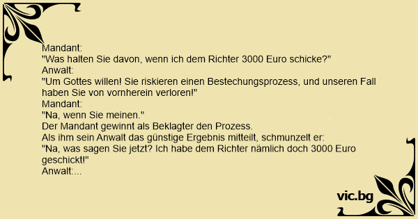 "Na, was sagen Sie jetzt? Ich habe dem Richter nämlich doch 3000 Euro geschickt!"