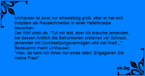 Umhauser ist zwar nur einssiebzig groß, aber er hat sich trotzdem als Rausschmeißer in einer Hafenkneipe beworben.