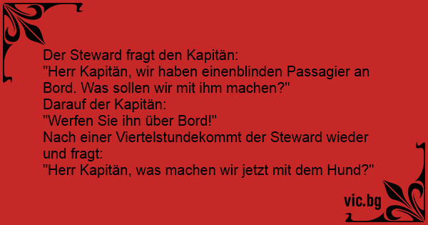 "Herr Kapitän, wir haben einenblinden Passagier an Bord. Was sollen wir mit ihm machen?"