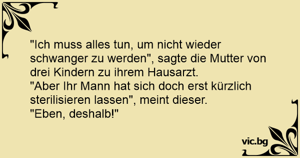 "Aber Ihr Mann hat sich doch erst kürzlich sterilisieren lassen", meint dieser.
