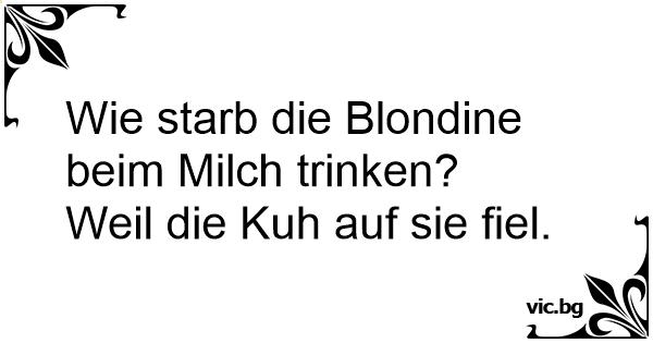 Onlangs is een dom blondje gestorven toen ze melk aan het drinken was... Het tragische ongeval gebeurde toen de koe ging zitten.