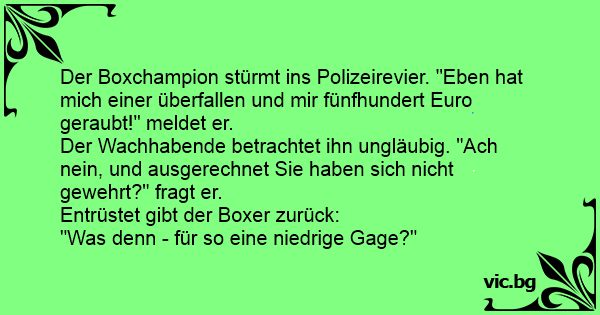 Der Boxchampion stürmt ins Polizeirevier. "Eben hat mich einer überfallen und mir fünfhundert Euro geraubt!" meldet er.