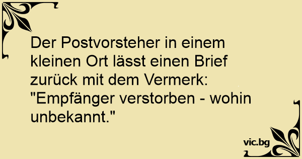 Der Postvorsteher in einem kleinen Ort lässt einen Brief zurück mit dem Vermerk: