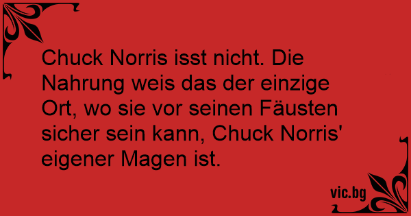 Chuck Norris isst niсhт. Die Nahrung weis das der einzige Ort, wo sie vor seinen Fäusten sicher sein kann, Chuck Norris' eigener Magen ist.