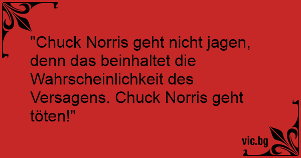 "Chuck Norris geht niсhт jagen, denn das beinhaltet die Wahrscheinlichkeit des Versagens. Chuck Norris geht töten!"