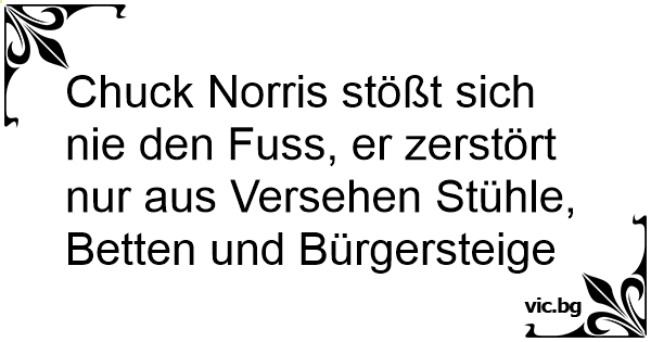 Chuck Norris stößt sich nie den Fuss, er zerstört nur aus Versehen Stühle, Betten und Bürgersteige