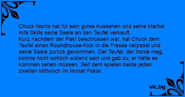 Chuck Norris hat für sein gutes Aussehen und seine Martial Arts Skills seine Seele an den Теufеl verkauft.