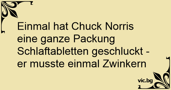 Einmal hat Chuck Norris eine ganze Packung Schlaftabletten geschluckt - er musste einmal Zwinkern