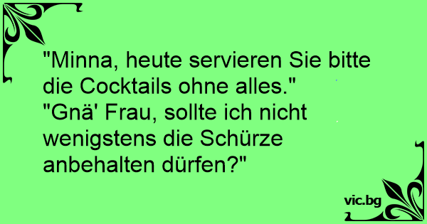 "Minna, heute servieren Sie bitte die Cocktails ohne alles."