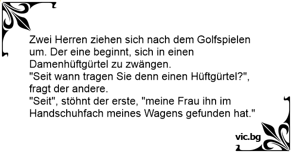 "Seit", stöhnt der erste, "meine Frau ihn im Handschuhfach meines Wagens gefunden hat."