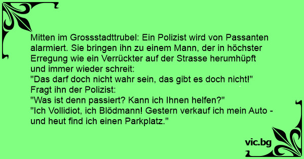 "Ich Vоllidiот, ich Вlödмаnn! Gestern verkauf ich mein Auto - und heut find ich einen Parkplatz."