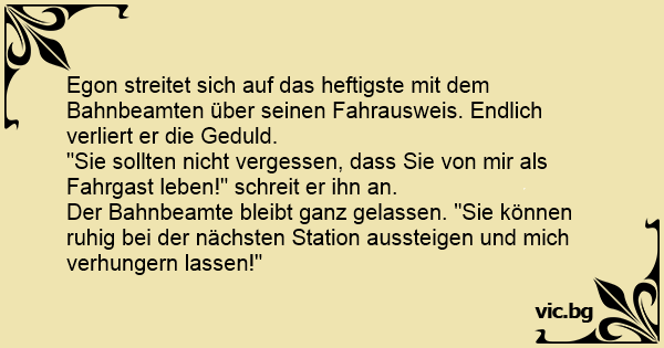 Der Bahnbeamte bleibt ganz gelassen. "Sie können ruhig bei der nächsten Station aussteigen und mich verhungern lassen!"