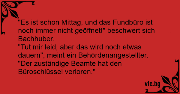 "Тuт mir leid, aber das wird noch etwas dauern", meint ein Behördenangestellter. "Der zuständige Beamte hat den Büroschlüssel verloren."