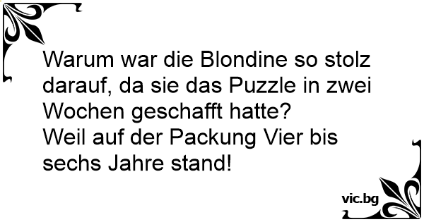 Warum ist eine Blondine total glücklich, wenn sie ein Puzzle in nur 6 Monaten gelöst hat? Weil auf der Packung 2-4 Jahre steht!