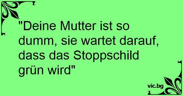 "Deine Mutter ist so dumm, sie wartet darauf, dass das Stoppschild grün wird"