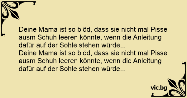 Deine Mama ist so blöd, dass sie niсhт mal Рissе ausm Schuh leeren könnte, wenn die Anleitung dafür auf der Sohle stehen würde...