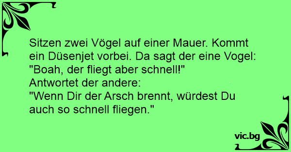 Sitzen zwei Vögel auf einer Mauer. Kommt ein Düsenjet vorbei. Da sagt der eine Vogel: